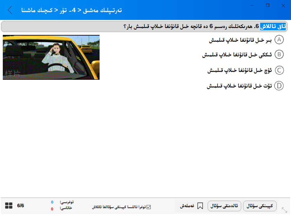 شوپۇرلۇق پىراۋىسىنىڭ ئاپتوبۇس، يۈك ماشىنىسى، كىچىك ماشىنا، موتوسىكلىت پىراۋىسى ئېلىشقا مۇناسىۋەتلىك 1- تۈر (باش نەزىرىيە)، 4- تۈر (ئاخىرقى نەزىرىيە) نەزىيە ئىمتىھان سۇئاللىرى شۇنداقلا كەسپكارلىق سالاھىيەتنامىسىغا مۇناسىۋەتلىك بولغان يۈك، يولۇچى تاكسى، خەتەرلىك بويۇم، تېرىنىر قاتارلىق نەزىرىيە بىلىملىرى تولۇق كىرگۈزۈلدى ، سىزنىڭ شوپۇرلۇق بىلىملىرىنى ئۆگىنىش ئىھىتىياجىڭىزدىن تولۇق چىقىدۇ.